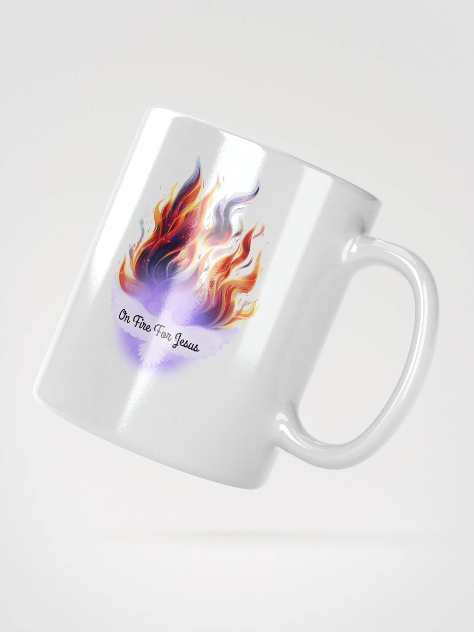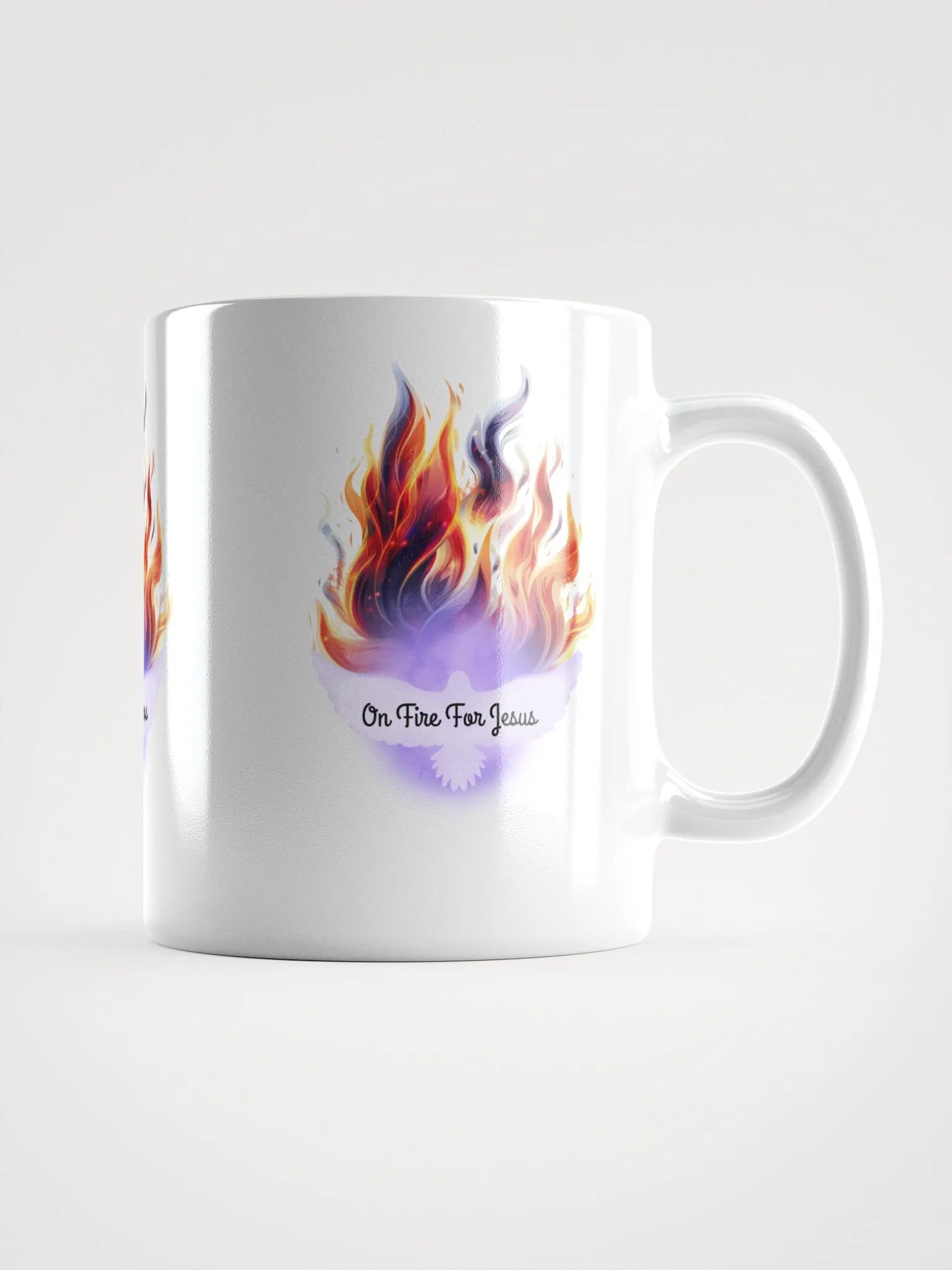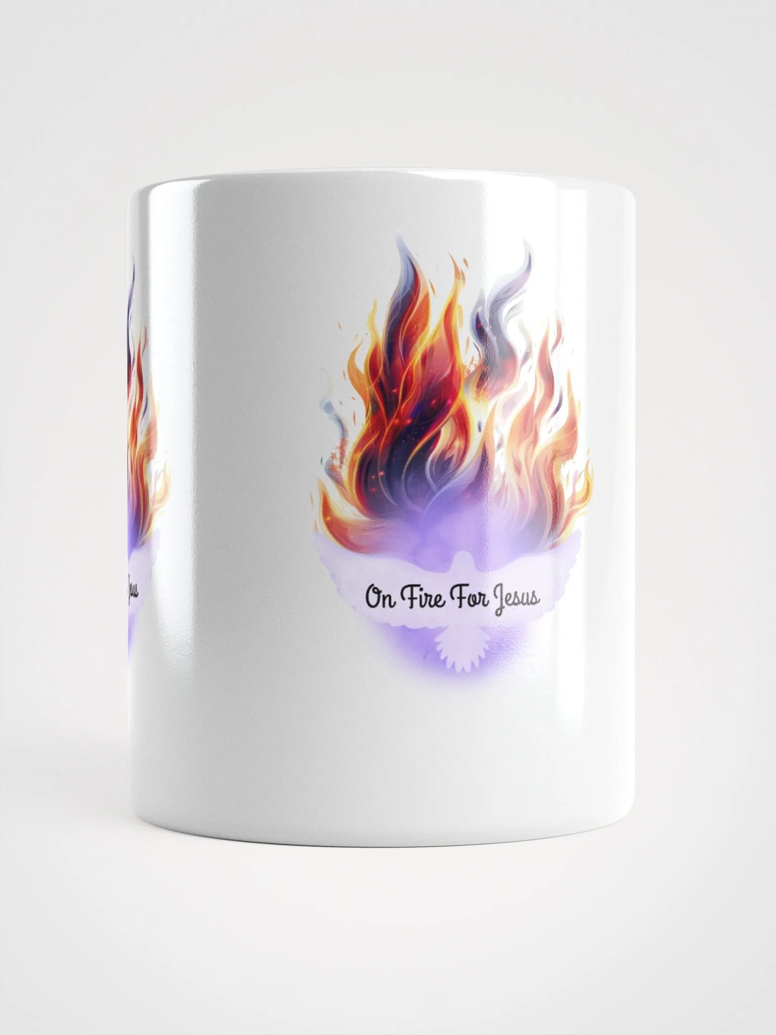 Introducing the "On Fire For Jesus" Mug – a beautifully crafted ceramic mug designed to ignite your passion and keep your faith burning brightly with every sip.This heat-resistant white glossy mug featuring a vibrant graphic of a flaming with Holy Spirit design . Dishwasher and microwave-safe ceramic mug available in 11 oz, 15 oz, and 20 oz sizes.