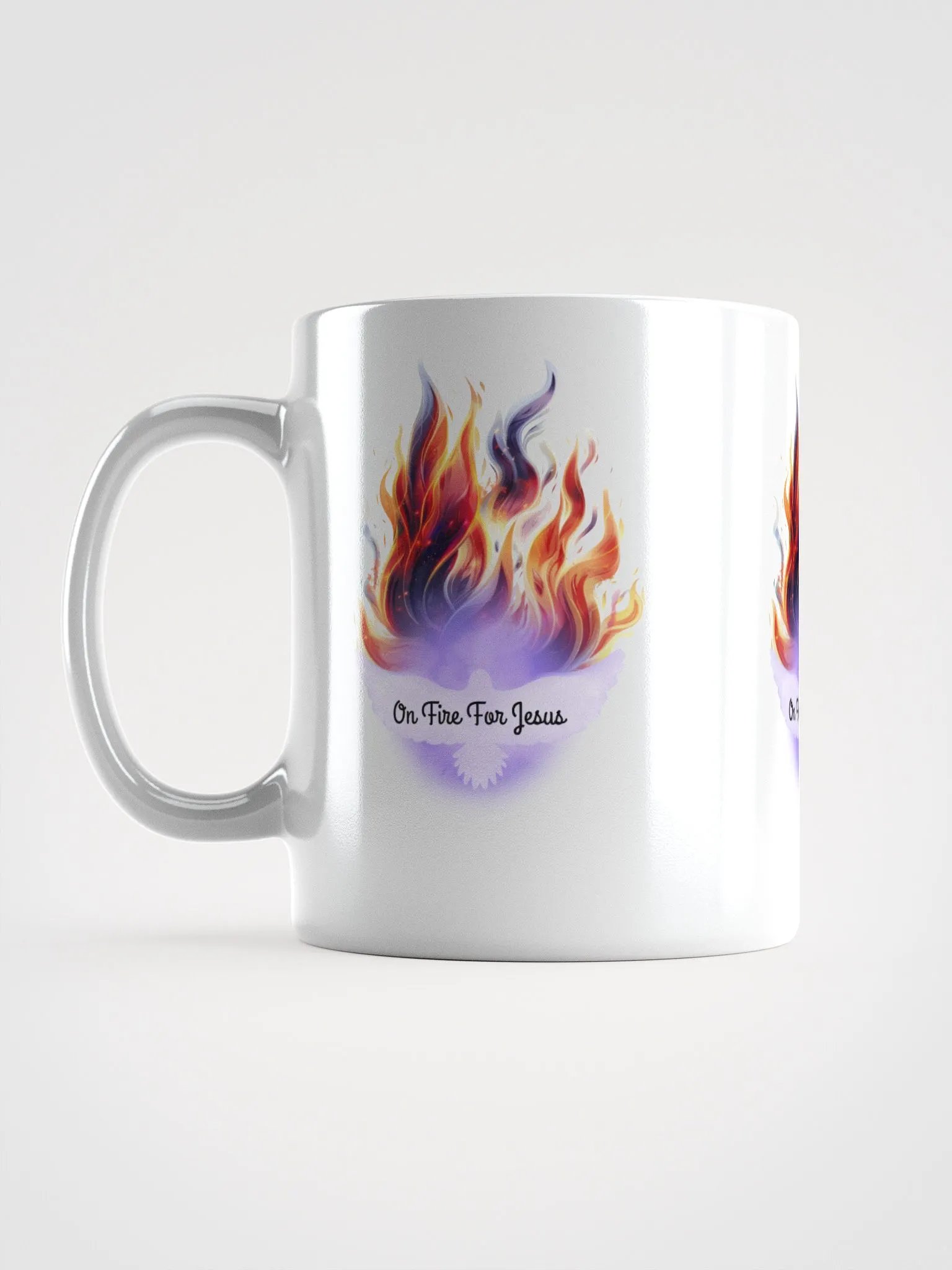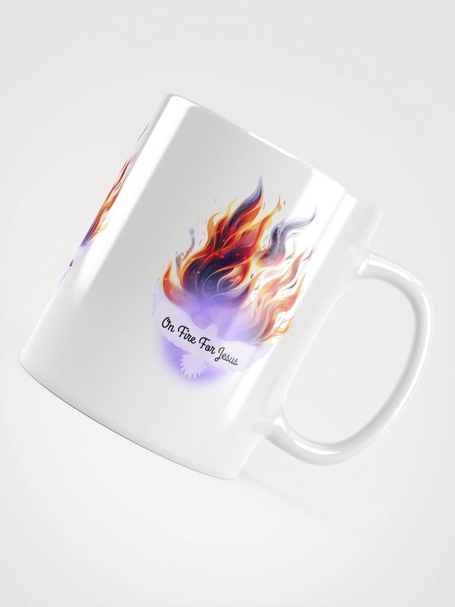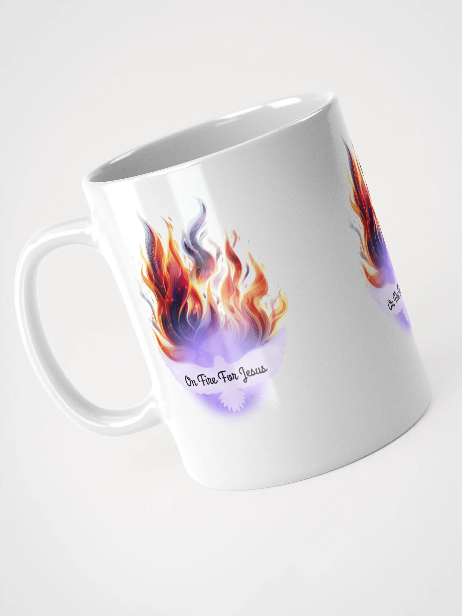 Introducing the "On Fire For Jesus" Mug – a beautifully crafted ceramic mug designed to ignite your passion and keep your faith burning brightly with every sip.This heat-resistant white glossy mug featuring a vibrant graphic of a flaming with Holy Spirit design . Dishwasher and microwave-safe ceramic mug available in 11 oz, 15 oz, and 20 oz sizes.